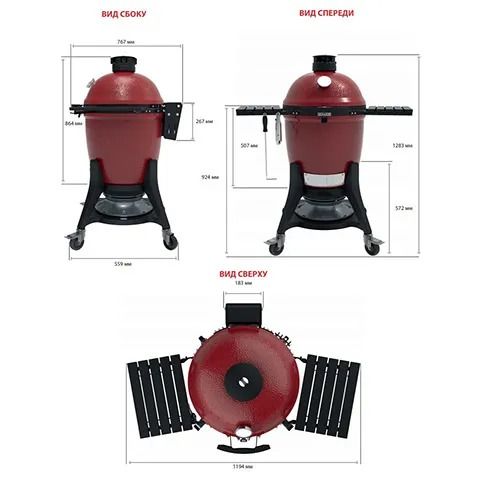 Гарантия1 годПоверхность гриля46 смД/Ш/В119/77/129 смВес128 кгКрышкаВысококачественная термокерамикаКотелВысококачественная термокерамикаБоковые столикиСкладныеМатериал боковых столиковАлюминий с порошковым покрытиемНожкиНескладныеНаличие колесестьРабочая решетканержавеющая стальПлощадь рабочей решетки1661 кв. смДиаметр прута рабочей решетки5 ммСборник для золызакрытыйДиаметр рабочей решетки46 смВстроенный термометрестьДержатели для столовых приборов8Страна производстваКитай